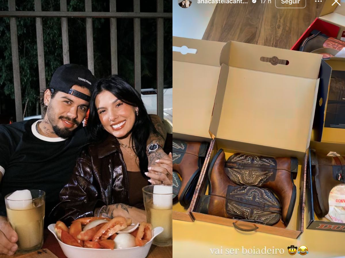 “Vai ser boiadeiro agora”, escreveu Ana, aos risos, enquanto mostrava o cantor experimentando as roupas. A brincadeira rapidamente viralizou, rendendo muitos comentários dos fãs do casal.