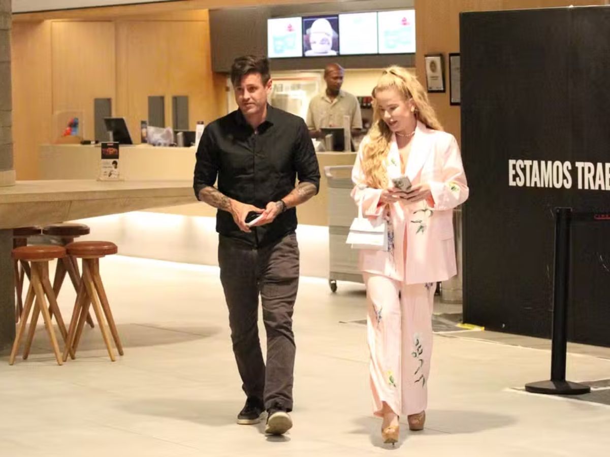 Para o encontro, Dado optou por um look discreto em preto, enquanto a acompanhante surgiu em um conjunto rosa estampado e salto alto. Os cliques registraram os dois em clima descontraído, trocando sorrisos e conversas ao longo do passeio.