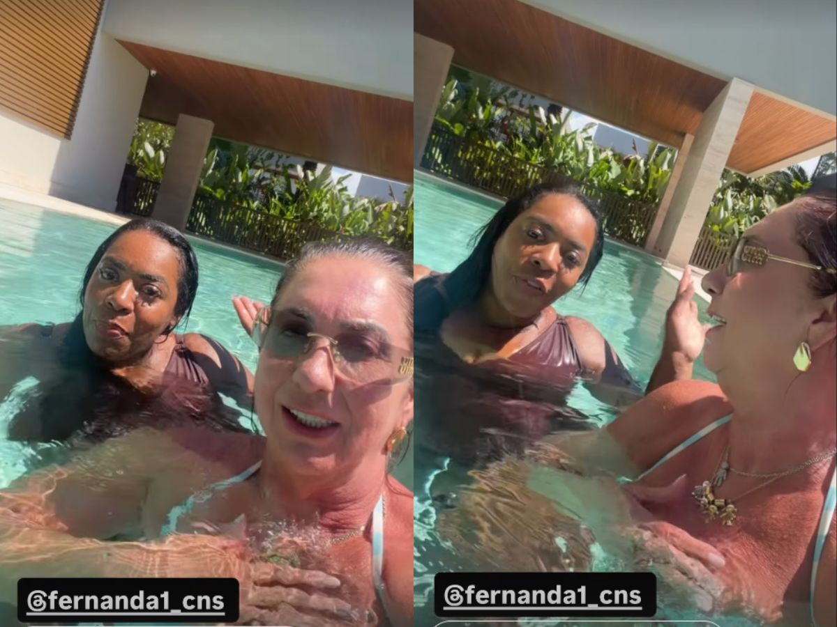 Fernanda Cristina, mãe do jogador Vini Jr., e Margareth Serrão, mãe da influenciadora Virginia Fonseca, aproveitaram a quinta-feira (29/1) de sol intenso no Rio de Janeiro para relaxar juntas. As duas surgiram nas redes sociais curtindo a piscina e celebrando um momento de descanso depois de um dia dedicado às crianças da família.