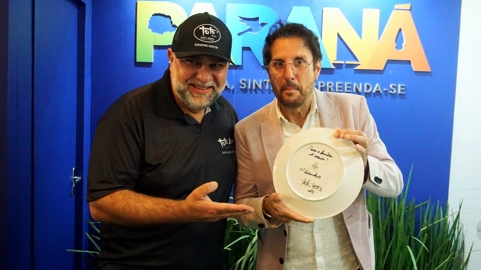 O set da Família Zoreia em Campo Largo acaba de ganhar um presente especial direto da 32ª Feira da Louça: um prato escolhido a dedo e autografado pelo artista plástico Campo Larguense Toto Lopes, para dar ainda mais charme a casa da Família Zoreia. E adivinha quem ganhou o presente? Ele mesmo, o ator e diretor Rosa (Renato Rosa), que interpreta o divertido Zelão na série.
