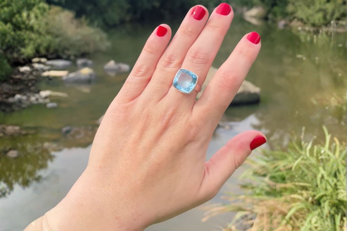 Para começar sem erro, peças como o Anel de Prata com Topázio Azul equilibram elegância e praticidade. O metal frio da prata combina com o tom da pedra e mantém o foco no azul cristalino. Em eventos, some um brinco pequeno ou um colar delicado para criar um conjunto harmônico.
