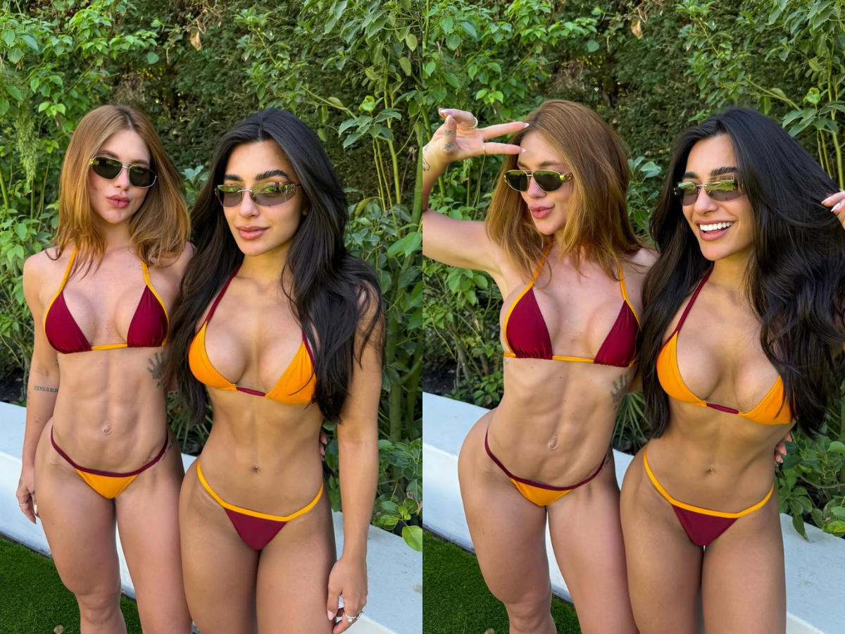 Em um dos cliques, Virginia surge abraçada a Duda, ambas vestindo modelos de biquíni que remetem às cores da bandeira espanhola. “Twinss”, escreveu a apresentadora na legenda, arrancando elogios e brincadeiras dos seguidores.